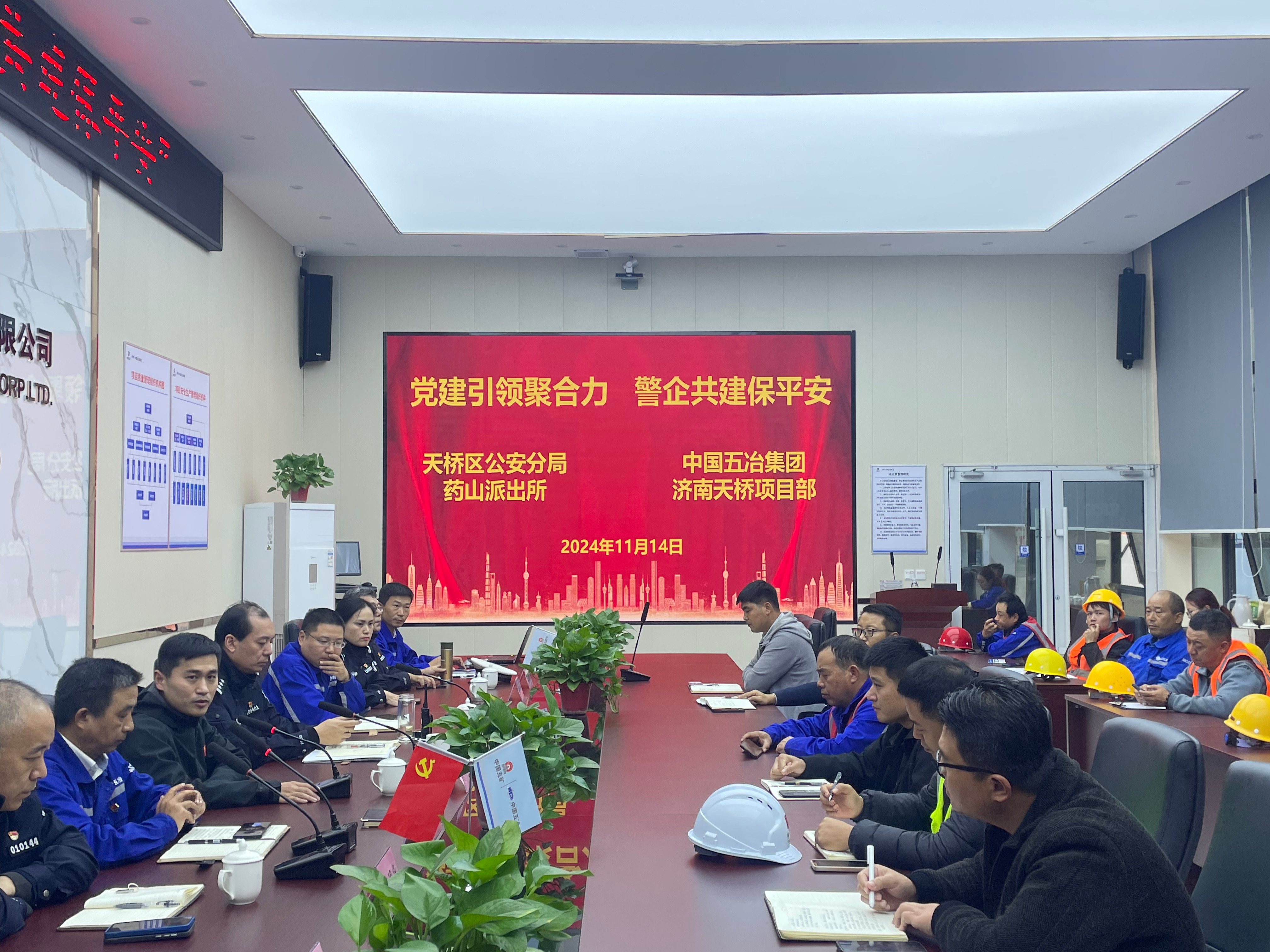 为切实强化党建引领,进一步加强交流合作,实现警企优势互补,构建和谐警企关系,共同维护企业生产生活秩序,11月14日,中国五冶济南天桥项目与济南市公安局交警支队天桥区大队、济南市公安局天桥区反诈中心共同开展“党建引领聚合力 警企共建保平安”党建联建活动。