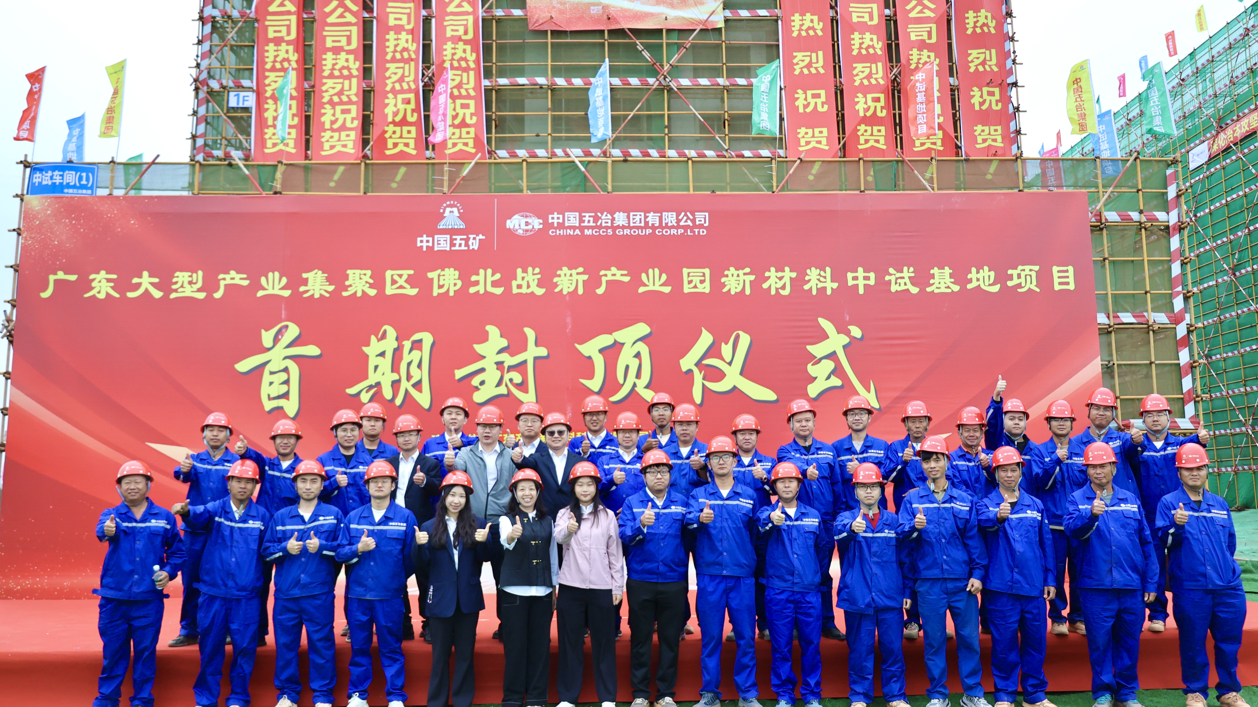 勠力同心拼发展 决战百日搏增长——中国五冶集团佛山佛北战新产业园新材料中试基地项目首期主体结构顺利封顶